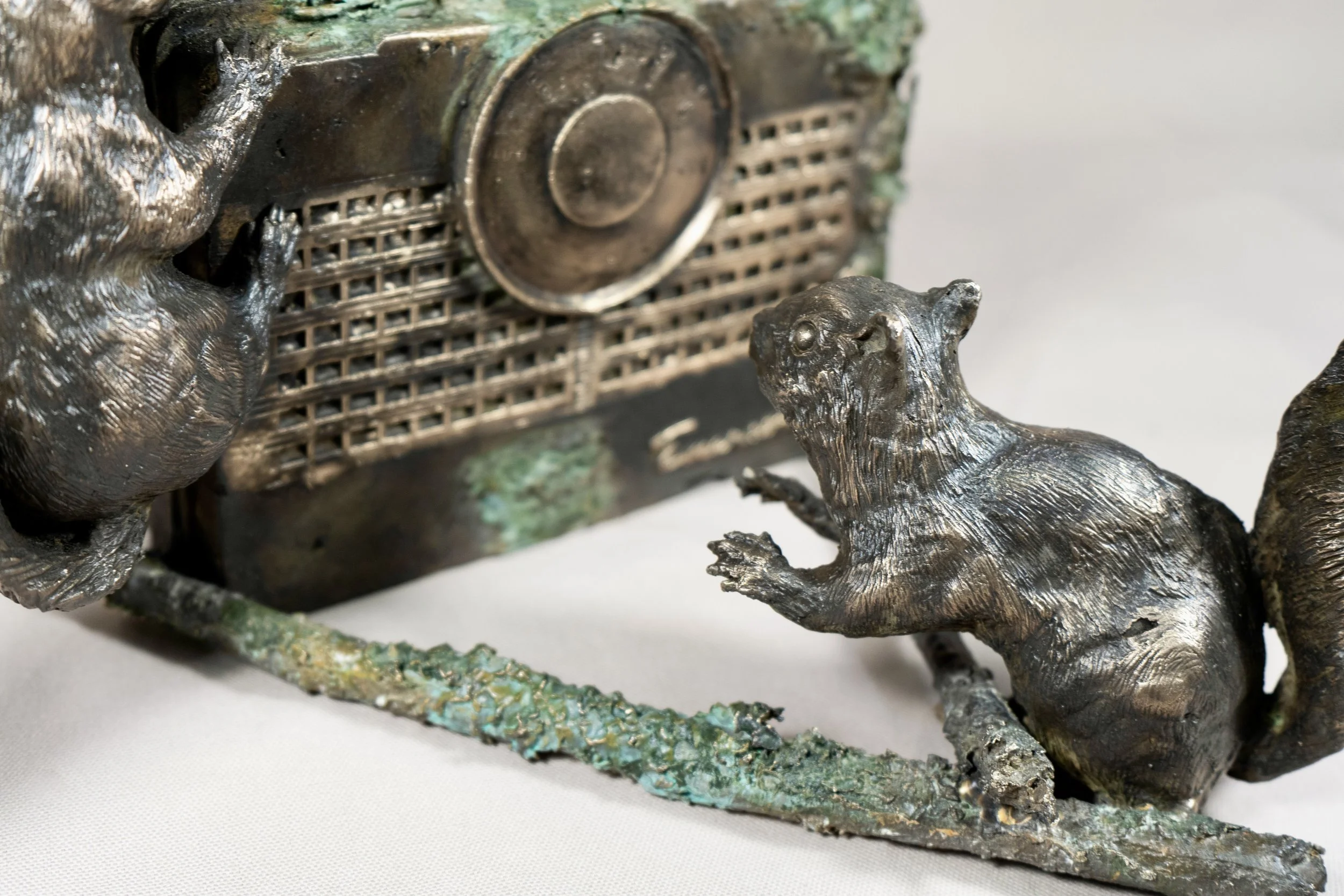 "Transmission" is a tribute to the wildlife of the Pacific Northwest. Each work highlights threatened and endangered endemic animals of Washington state, focusing on species found across its diverse ecosystems. Found throughout their habitats these animals speak through small antique radios sending out quiet pleas and messages. The radios act as vessels for voices we often ignore, fragile signals reminding us to listen to the natural world. Their transmissions ask us to tune in before the silence grows permanent.